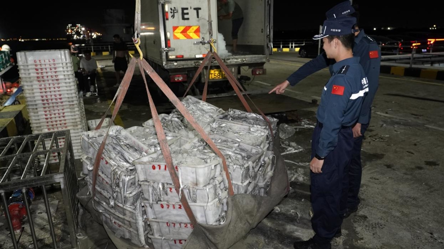 近日,中国海警局直属第一局成功查获2起涉嫌非法捕捞水产品案件,依法查扣涉案船舶2艘,抓获涉案人员34名,查获渔获物40000余公斤、网具18张。