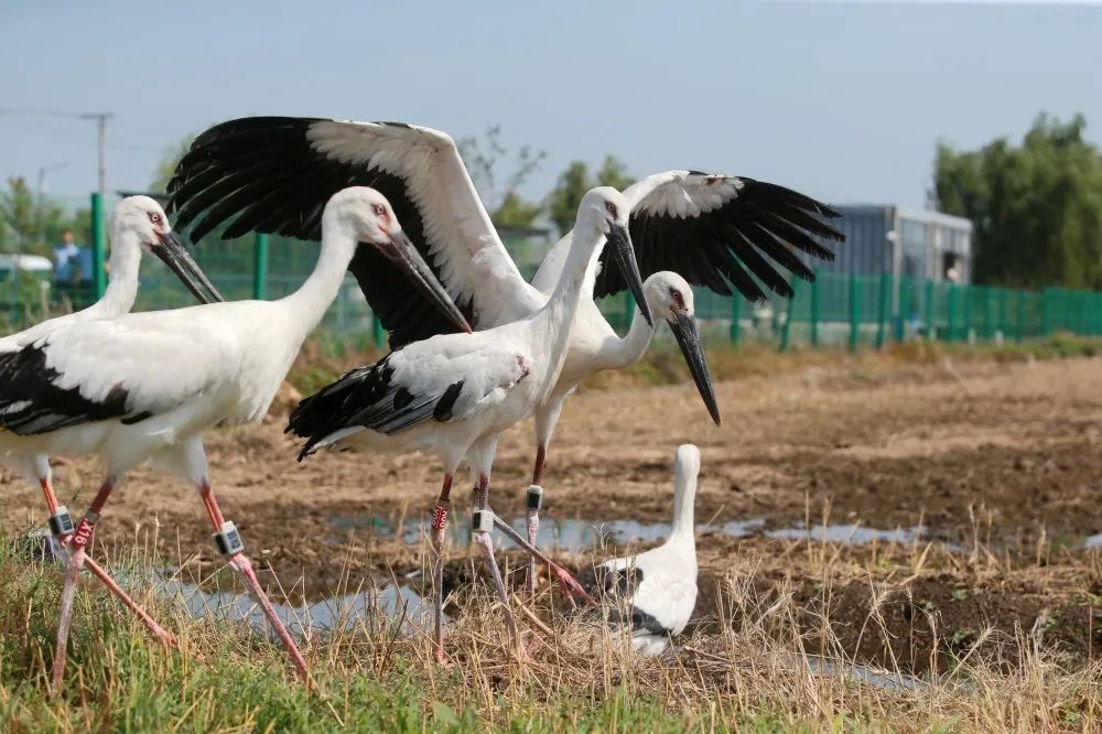 高邮救助站对受伤的东方白鹳救助后进行野外放飞