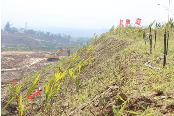 按照“开采一处、治理一处、复绿一处”的原则,企业对开采区实施复垦复绿,种植了椰子、荔枝、芒果、百香果等易存活又兼具经济价值的植物。“届时开采年限期满,不仅将良好的生态环境归还社会,更能通过形成可持续的林果经济,服务地方发展。长远来看,我们致力于将复垦区打造为集旅游观光与户外活动于一体的综合生态区域,为乡村振兴奠定坚实基础。”周建刚介绍。