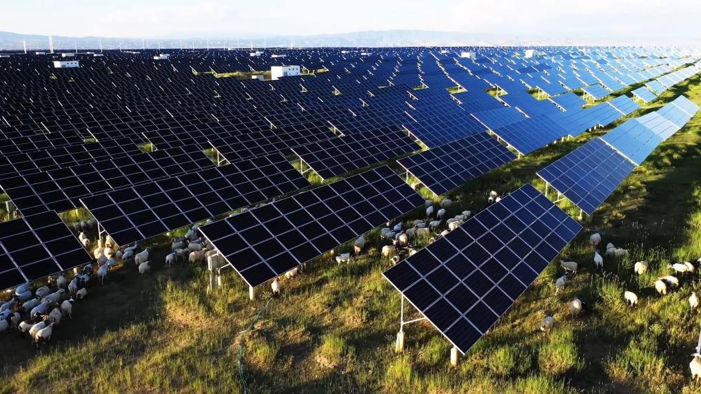 塔拉滩光伏产业园区位于青海省海南藏族自治州共和县境内。近年来,当地在荒漠化土地上创新“板上发电、板下养羊”模式,不仅实现生态效益与经济效益双向奔赴,更是青海创新发展模式,推动绿色发展的独特路径。